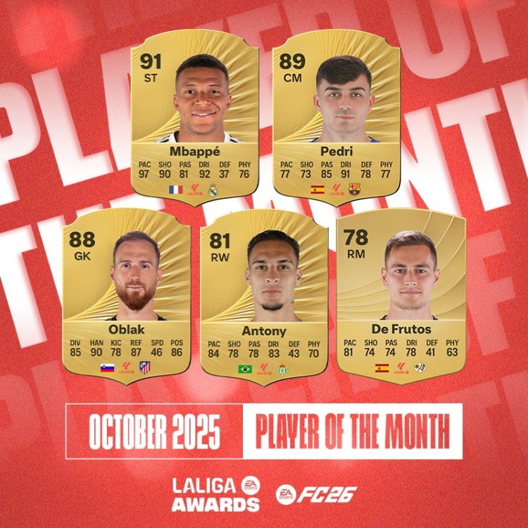 2025-10-23 00:07:09西甲公布10月份最佳球员候选名单:姆巴佩、佩德里、安东尼在列
