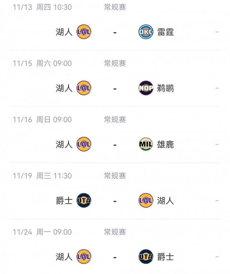 湖人自媒体BronMuse晒出了球队后续5场比赛赛程,写道:“预测下湖人战绩。”