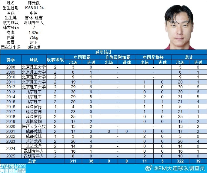 2025-11-10 00:03:12322场39球!博主:37岁深圳青年人球员韩光徽宣布退役